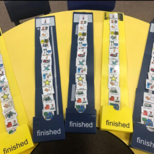 Following on from the layout of your classroom, introducing personalised visual schedules was a crucial part of creating a meaningful learning environment. Students have their own visual schedules to help understanding of expectations throughout the school day. Removing prompts for schedule use promotes independence when transitioning around the classroom and school.