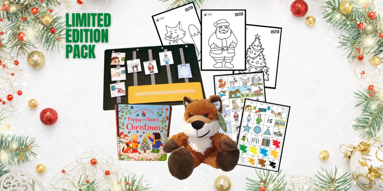 We think your PECS learner will love this quality interactive Christmas Activity set on sale now in our shop! Whilst helping Poppy and Sam to search for Father Christmas they can explore the little tactile indentations and enjoy peeping through to the next page. This book is particularly suitable for PECS learners as it offers so many opportunities for communication through commenting. Published by Usborne, written by Sam Taplin, illustrated by Simon Taylor-Kielty.