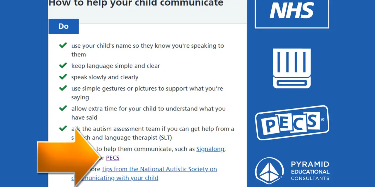 The NHS A-Z Health guide suggests PECS as a way to help autistic people to communicate.